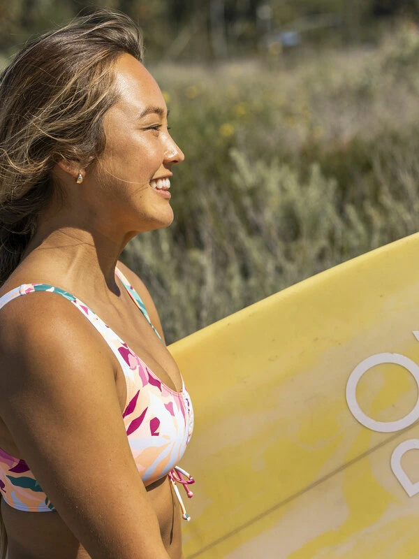 Regular in fit, but not in performance! This eye-catching addition to the ROXY Active Collection is crafted from soft yet durable resistant stretch fabric to brighten your beach look for longer. The athletic bralette shape features fixed straps with an easy pullover design for a comfortable, secure fit.
