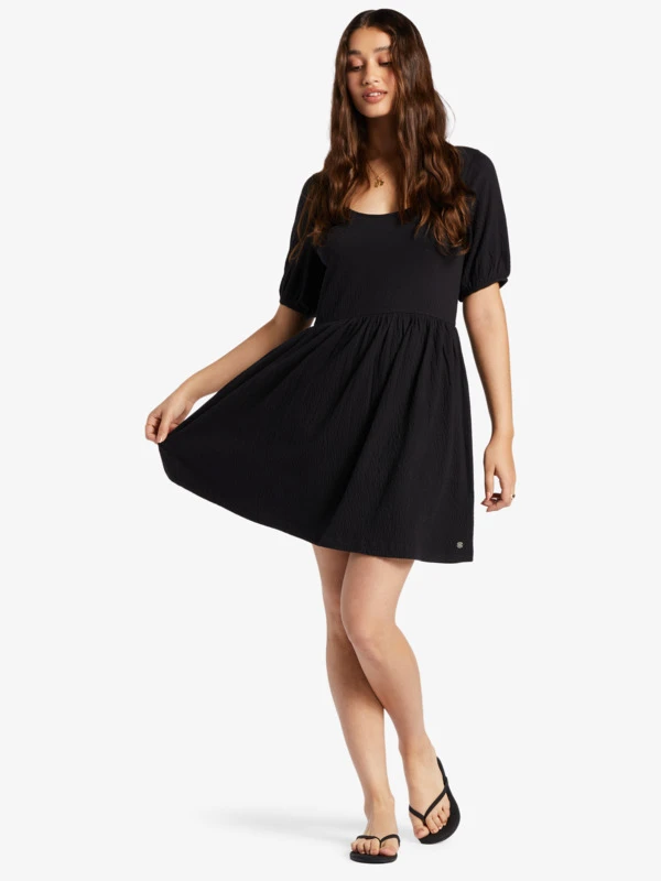 The All My Dreams mini dress combines a cute puff sleeve with a scoop neck, and a fun, flowy skirt. Made of crinkle jersey, this lightweight women’s sundress is a casual staple for everything from coastal days to nights out in the city.