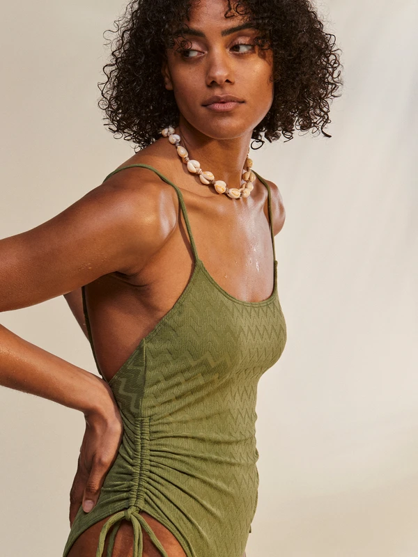 Made of recycled textured jacquard fabric, the Current Coolness one-piece swimsuit has a scoop neck and an adjustable leg opening. Cinch it high to create a dreamy long-legged silhouette.