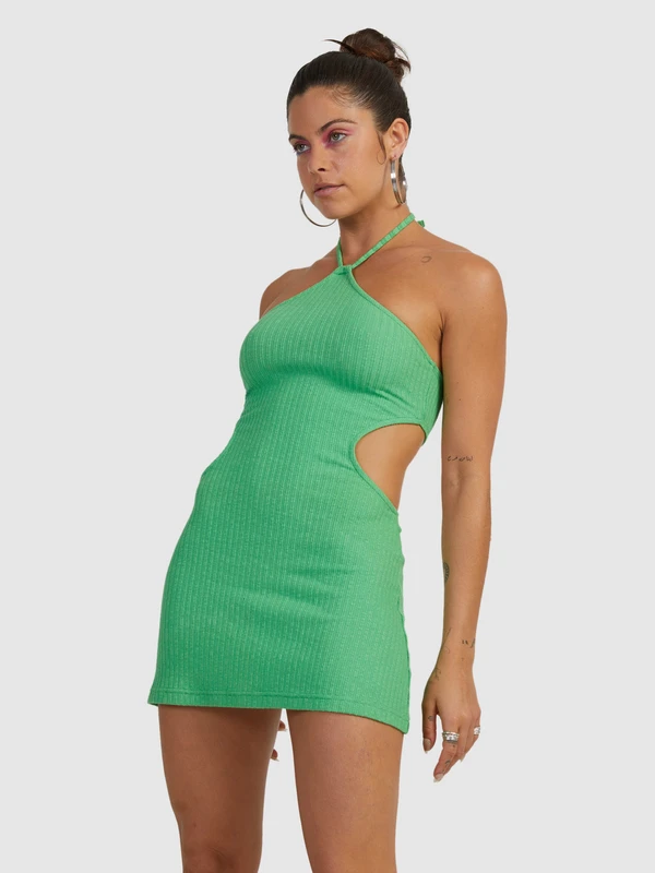 Made of ribbed knit fabric, this dress from the ROXY X MIMI Collection is your new statement-making mini. The women’s halter dress takes a bold approach to a retro silhouette with side cut-outs and yarn-dyed stripes.