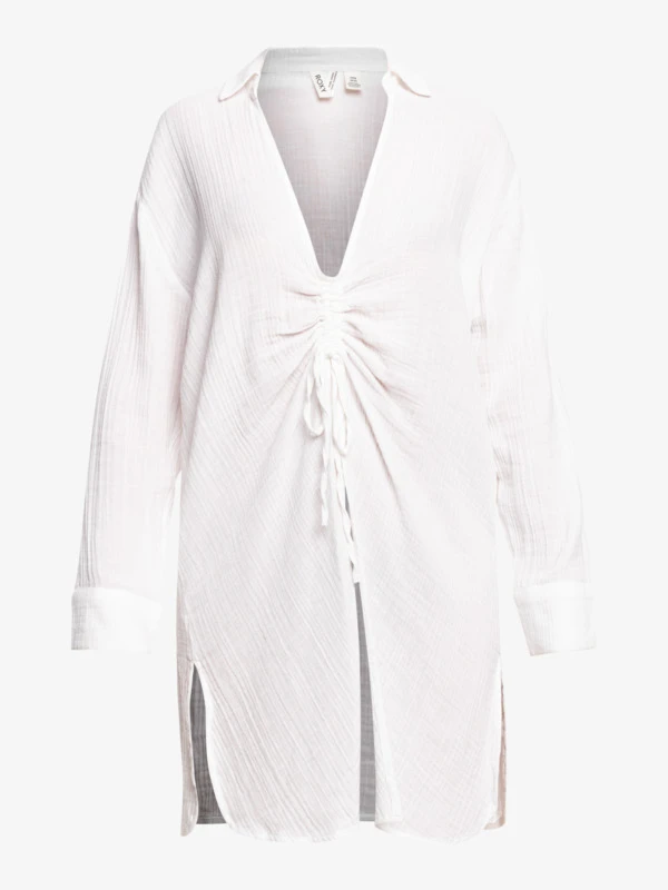 Crafted of airy cotton with a light hand feel, this versatile long-sleeve dress is styled with a drawstring front tie and side slits for movement. Perfect as a beach cover-up or as a lightweight layer.