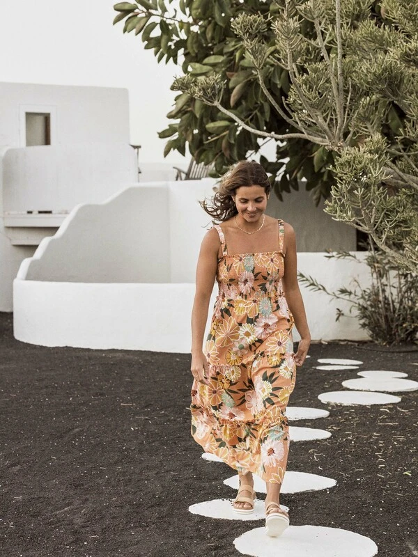 Stay beachy keen with the Sunnier Shores maxi dress for women. The tiered dress is crafted from soft cotton viscose fabric and features a flattering smocked bodice with a tiered skirt, making it perfect for warm summer days.