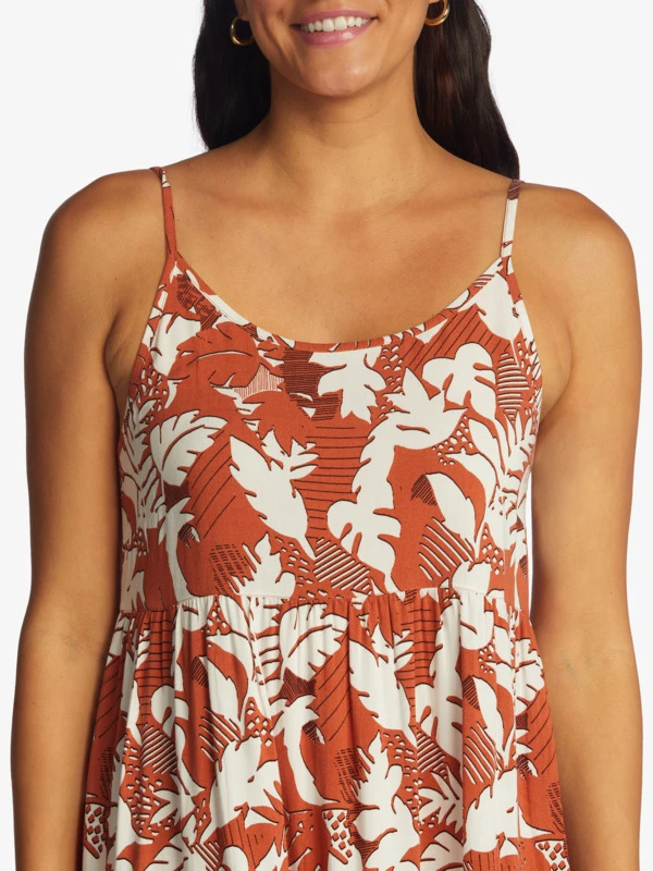 Our Teen Dream dress features a retro-inspired floral print on lightweight woven viscose, making it for summer nights by the bonfire. This Roxy staple details adjustable spaghetti straps, an open back cut-out detail, and a tiered skirt for added flow.
